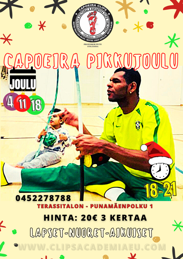 It is with great happiness that we at Clips Academia Europe are inviting you, your relatives and friends to our first Capoeira Pikkujuolu in Helsinki.