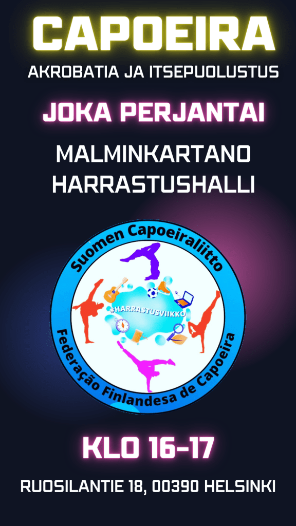 Capoeira on suosittu brasilialainen harrastus, jossa voit olla urheliija, kamppailija, taiteilija, akrobaatti, laulaja tai rumpali. Tärkeintä on, että olet oma itsesi! Tule mukaan ja ilmoittaudu tästä: